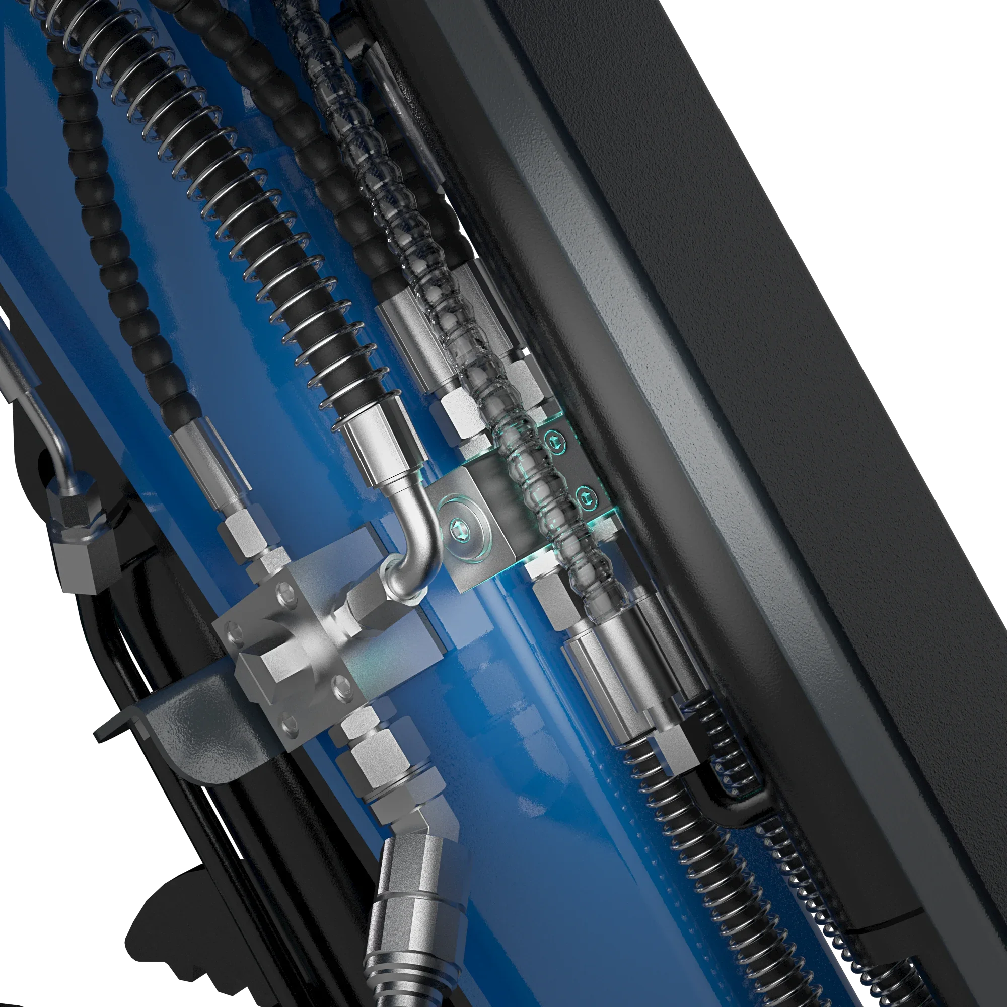Four-way crushing oil pipe, so that the hydraulic thumb clamp, hydraulic quick change and accessories have separate oil circuits and are equipped with quick connectors to improve connection efficiency and operation convenience.