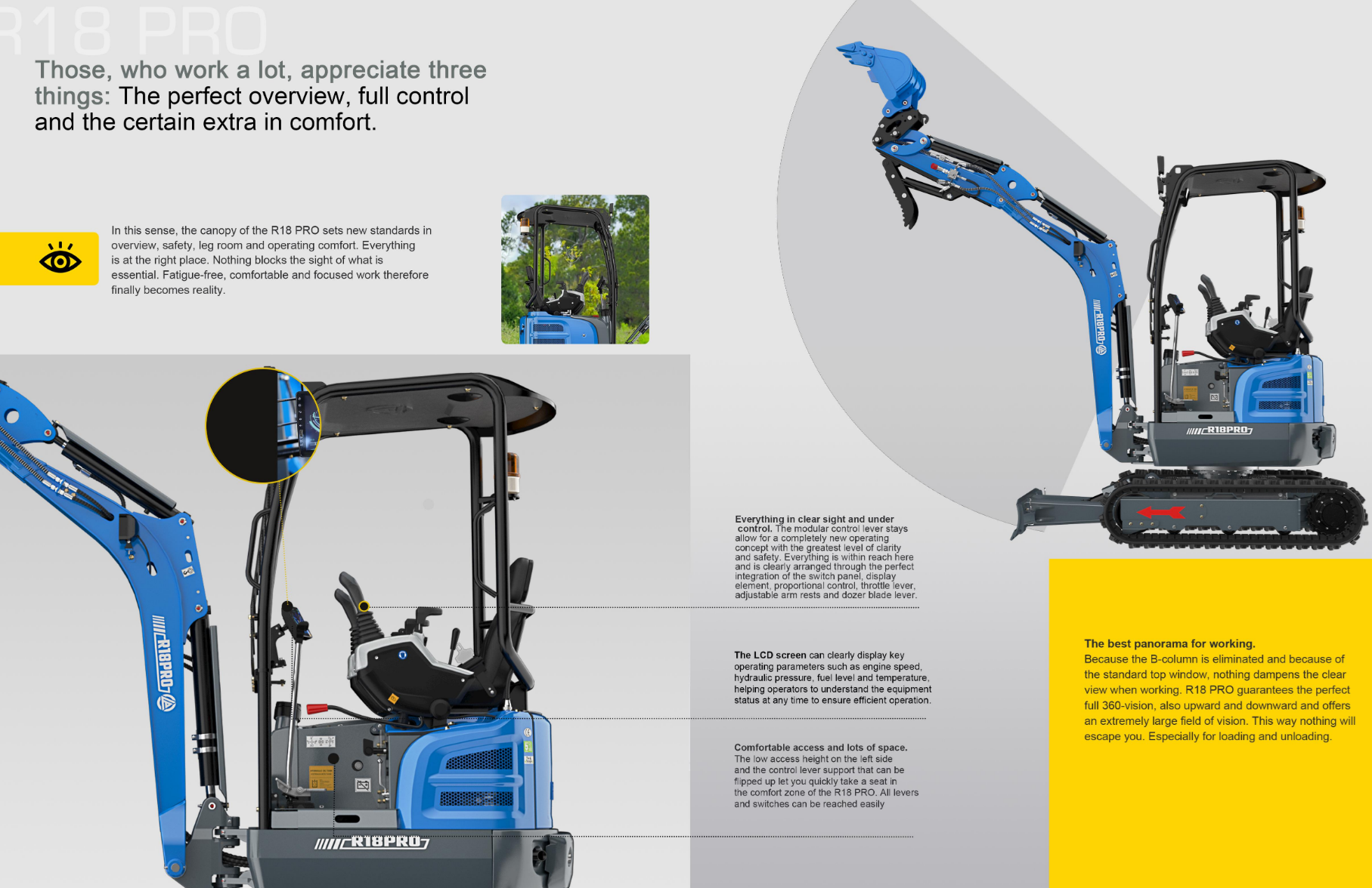4) Swing boom. Without moving the tracks, the boom can swing either direction at least 45 degrees.
