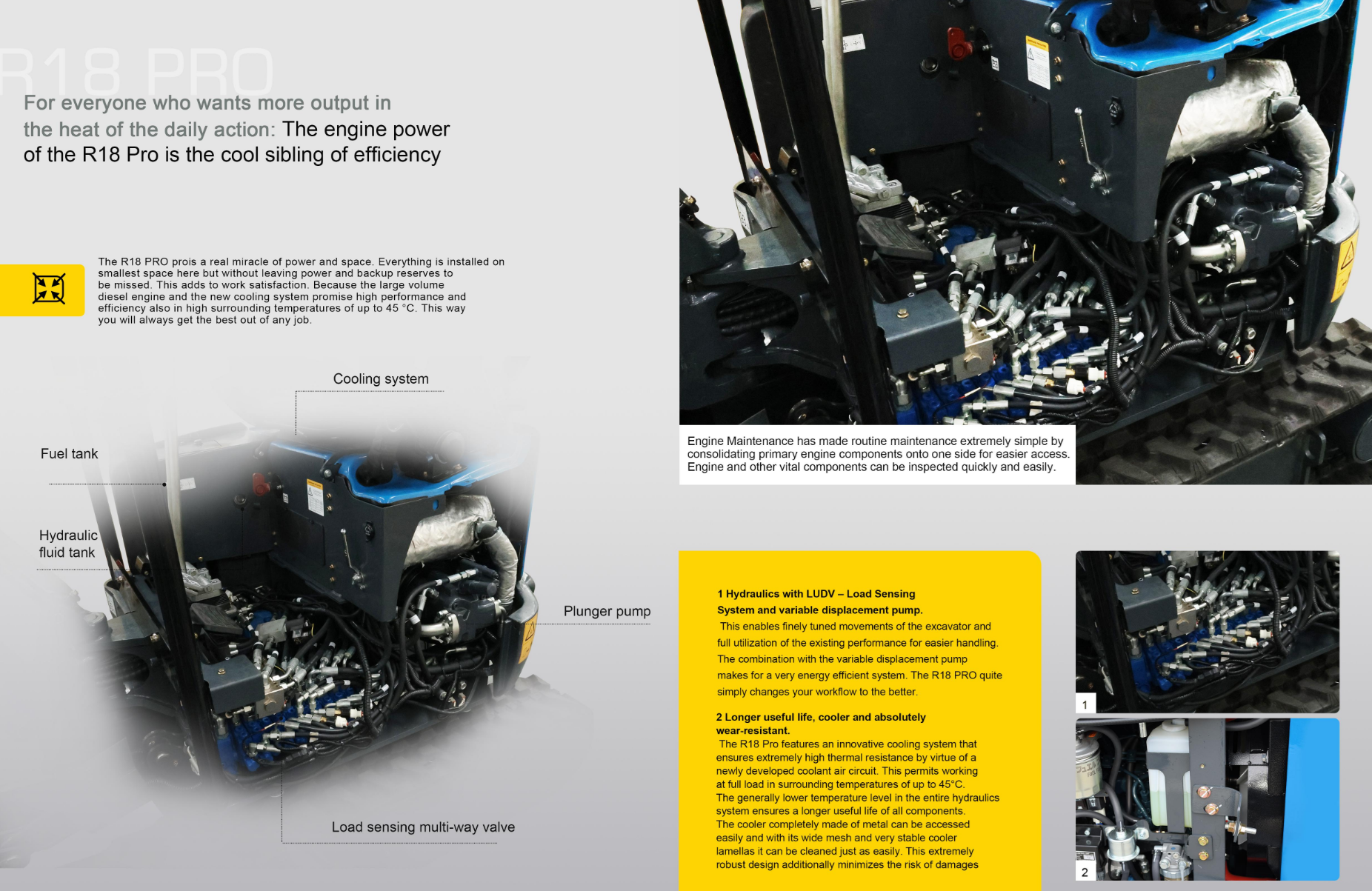 1) It uses a Kubota D902 diesel engine, which provides 11.8kW (16.1 horsepower).