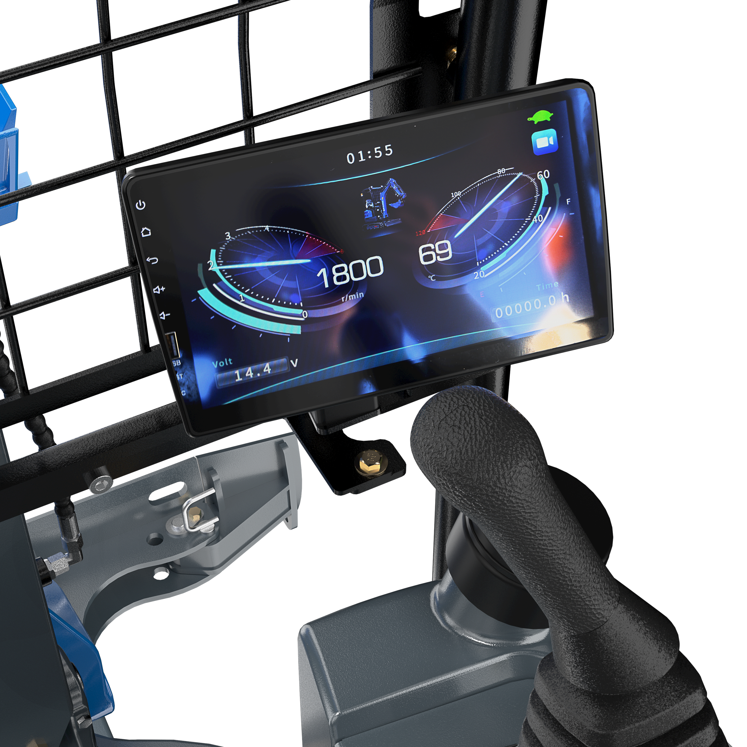 The smart large screen can display the various operating parameters of the excavator in real time, such as engine status, oil pressure, hydraulic system status, fuel consumption and temperature, etc., helping the operator to control the working status of the equipment at any time.