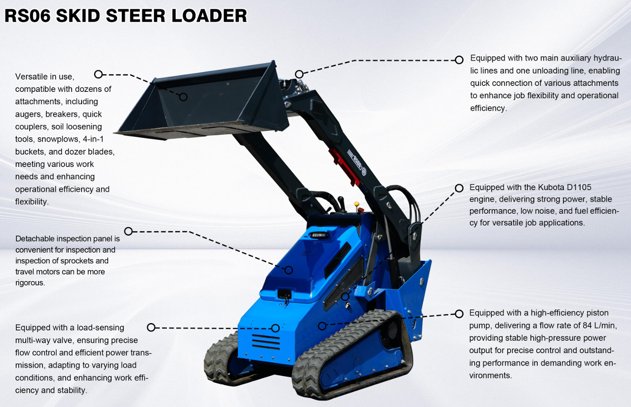 Automatic leveling: it has a rocker arm and short linkage mechanism that allows for a vertical arm lift, with only one control. Adds leveling operation during bucket raising or lowering.